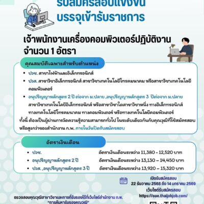 สำนักงานเศรษฐกิจการเกษตร รับสมัครสอบแข่งขัน บรรจุเข้ารับราชการ ตำแหน่งเจ้าพนักงานเครื่องคอมพิวเตอร์ปฏิบัติงาน จำนวน 1 อัตรา
